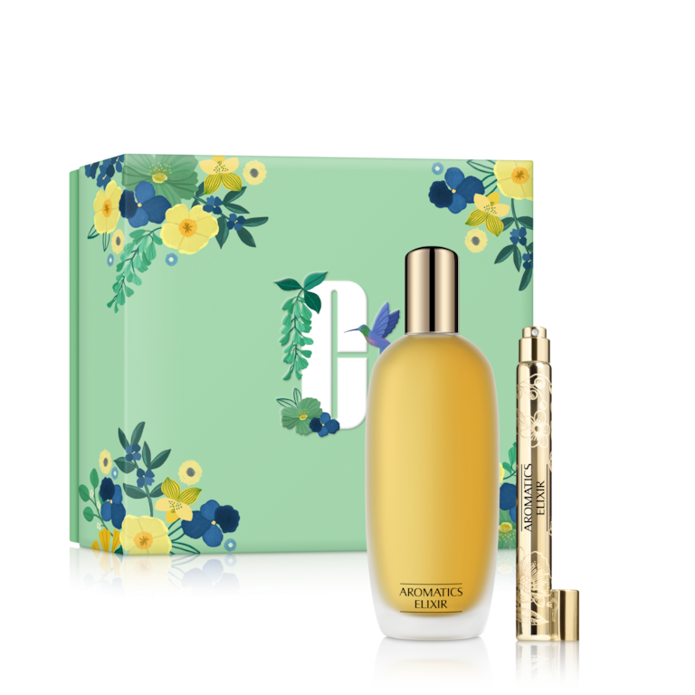 A pair of Clinique’s iconic chypre floral perfume. One full size, one travel-ready size for Aromatics anywhere.